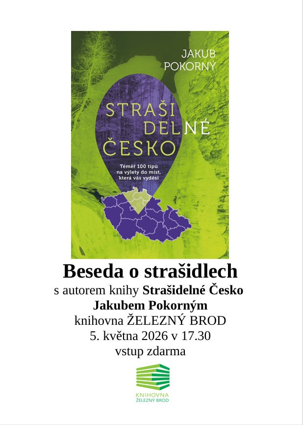 V úterý 5.5.2026 od 17:30 h. si s námi nejen o strašidlech přijede popovídat Jakub Pokorný autor knih Strašidelné Česko a Bizarní Česko. V květnu by měla vyjít nová kniha Lahodné Česko.